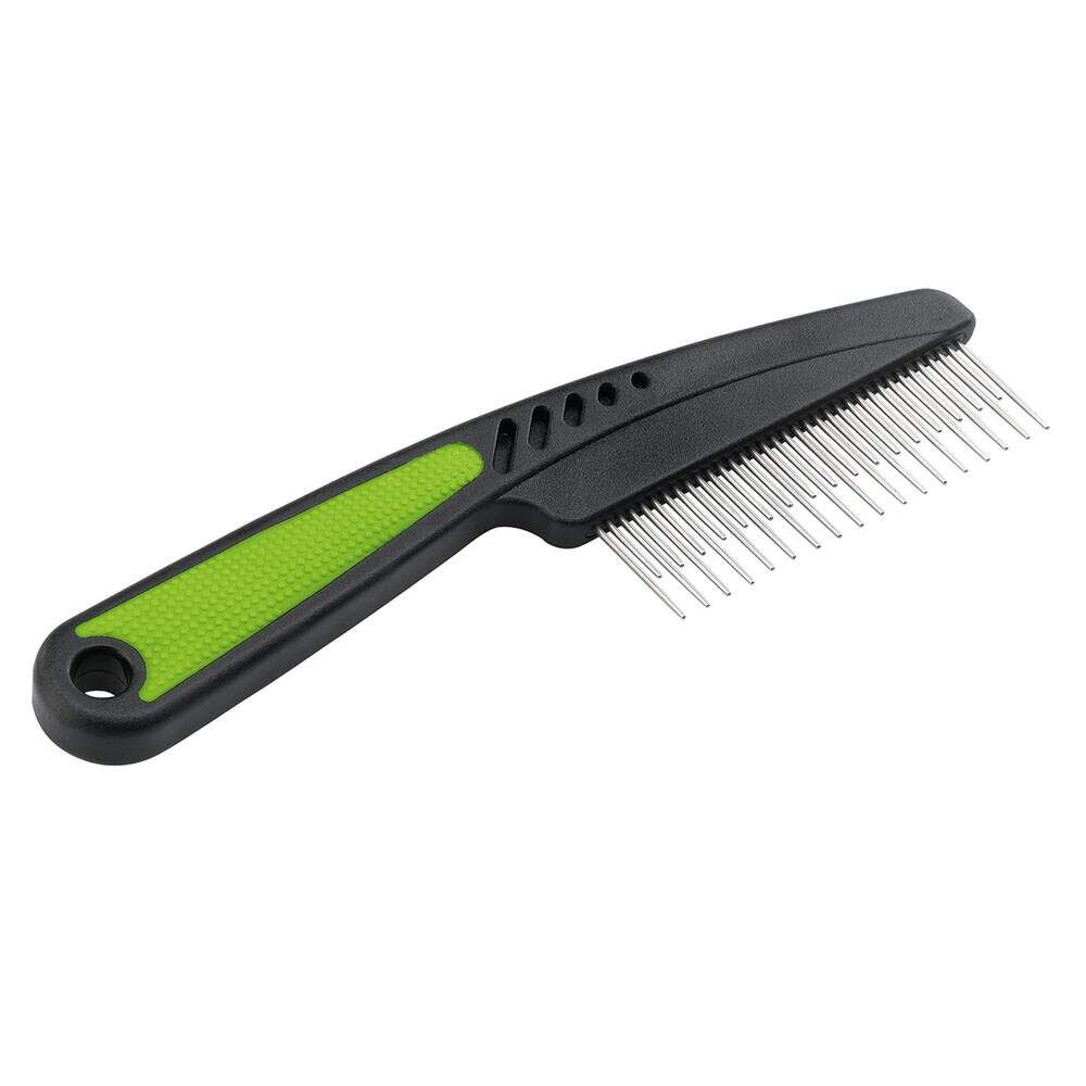 Ideal para gatos de pêlo médio e longo. Possui uma única fila de dentes cromados. Os dentes são dispostos para atingir os pelos longos e mais curtos, garantindo assim uma ação profunda e eficaz. Além disso, ele têm a particularidade de girar em si mesmo: dessa maneira, acompanham o movimento do pente, ajudando a remover nós e pelos mortos e a alisar o pêlo sem rasgá-lo. Para evitar o incômodo e tornar o ato de pentear uma atividade prazeirosa para seu bichano, os dentes são feitos com a ponta arredondada, atuam suavemente e sem irritar a pele.